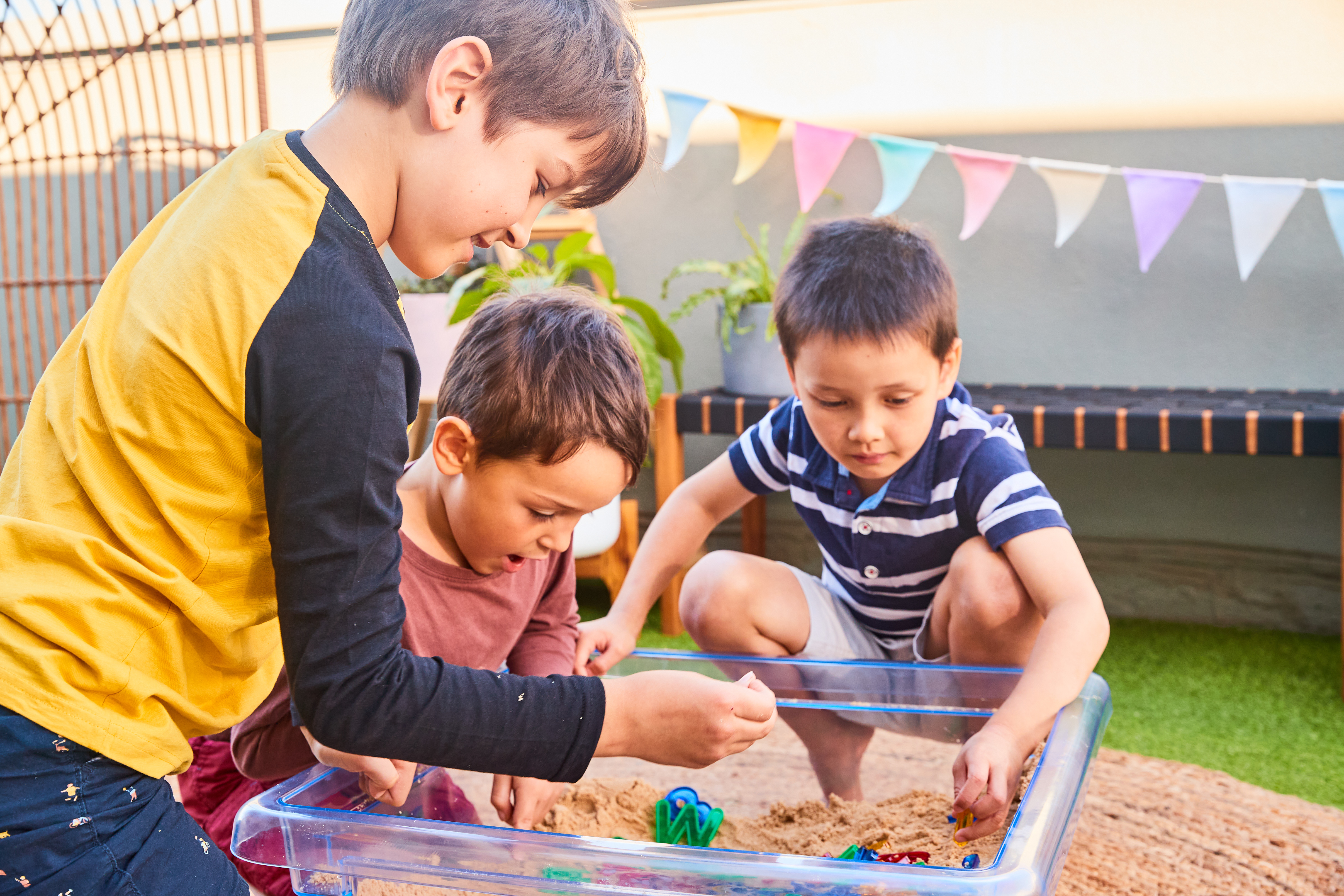 When children are engaged in sensory play, they’re often more open to conversation. This provides caregivers with natural opportunities to talk about feelings;